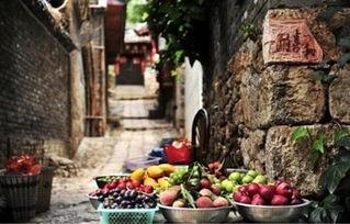 视频中的古街,青石板路,两旁是古色古香的建筑,仿佛穿越了时空。阳光透过树叶洒在地上,斑驳陆离。这时候,一个摊位上摆满了各种新鲜瓜果,那红彤彤的西瓜、绿油油的黄瓜,还有那黄澄澄的香瓜,看得人直流口水。